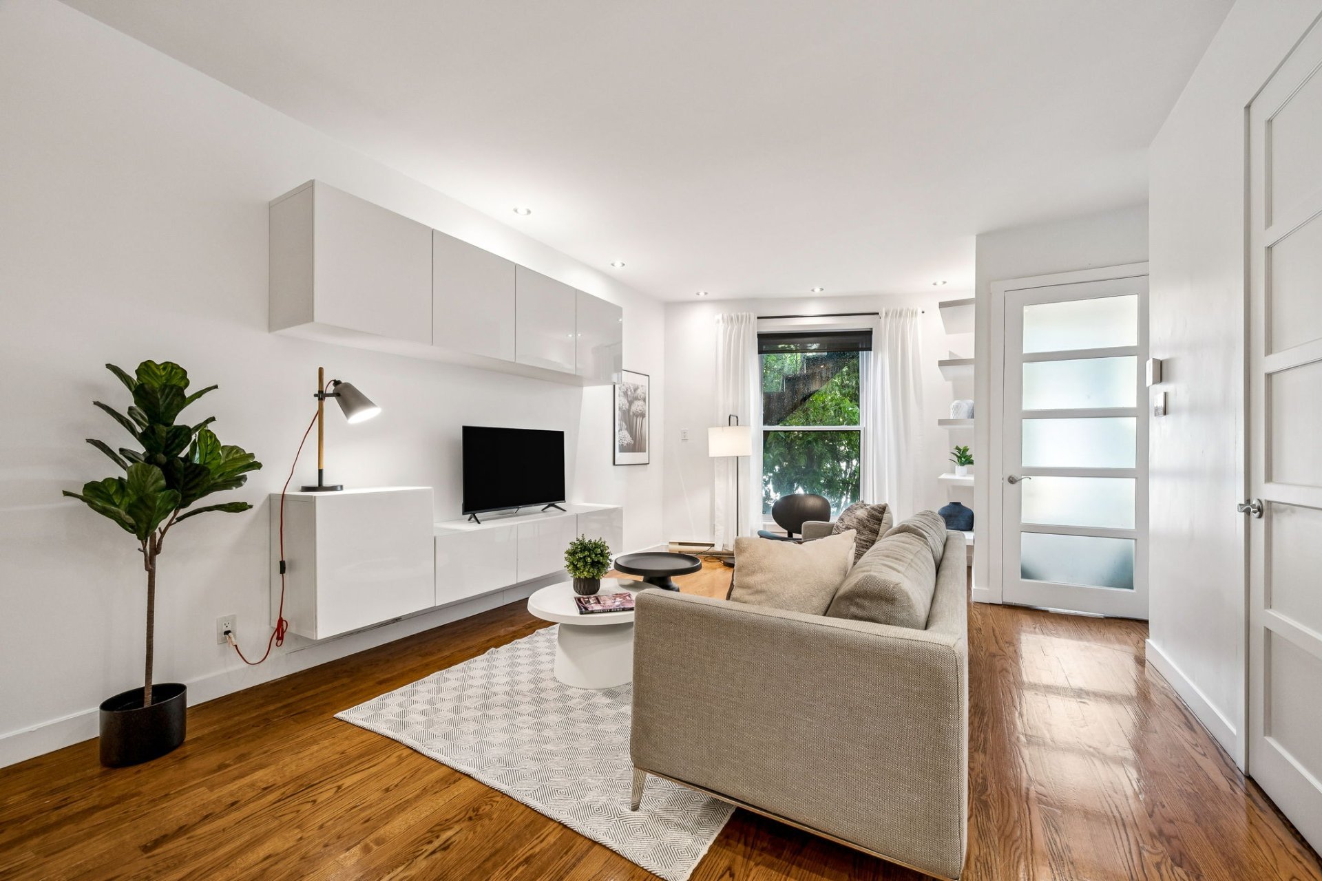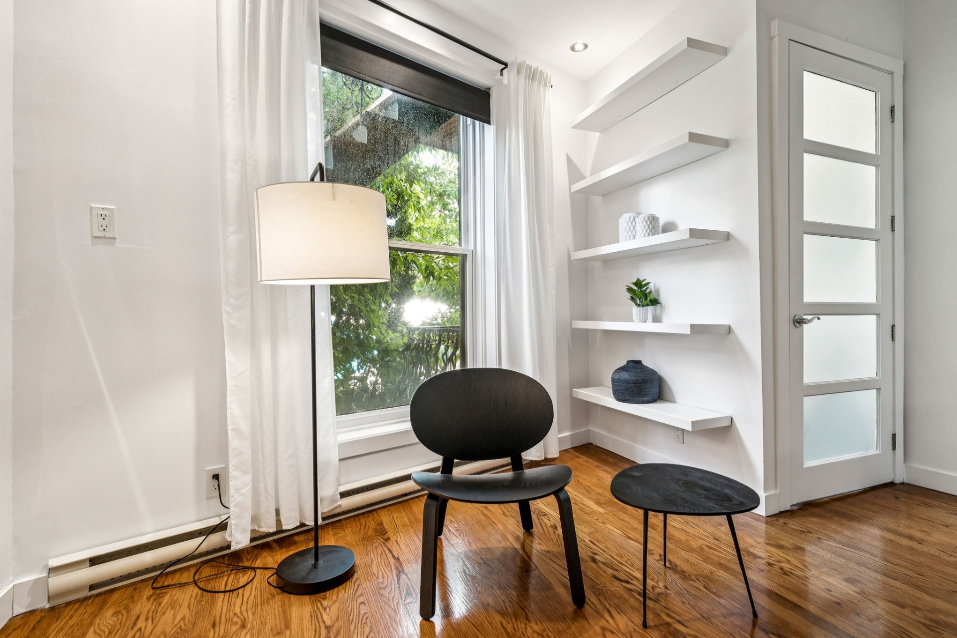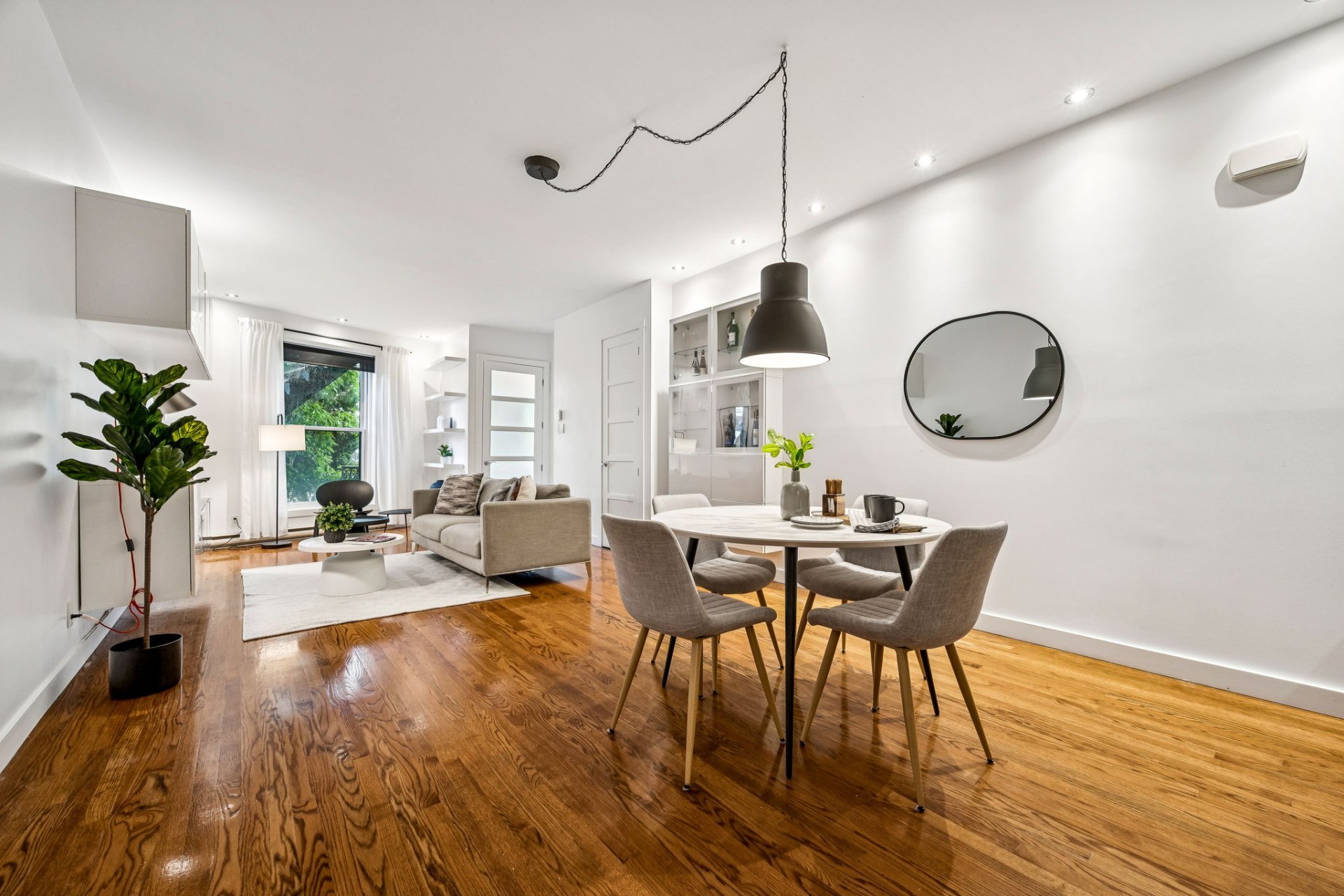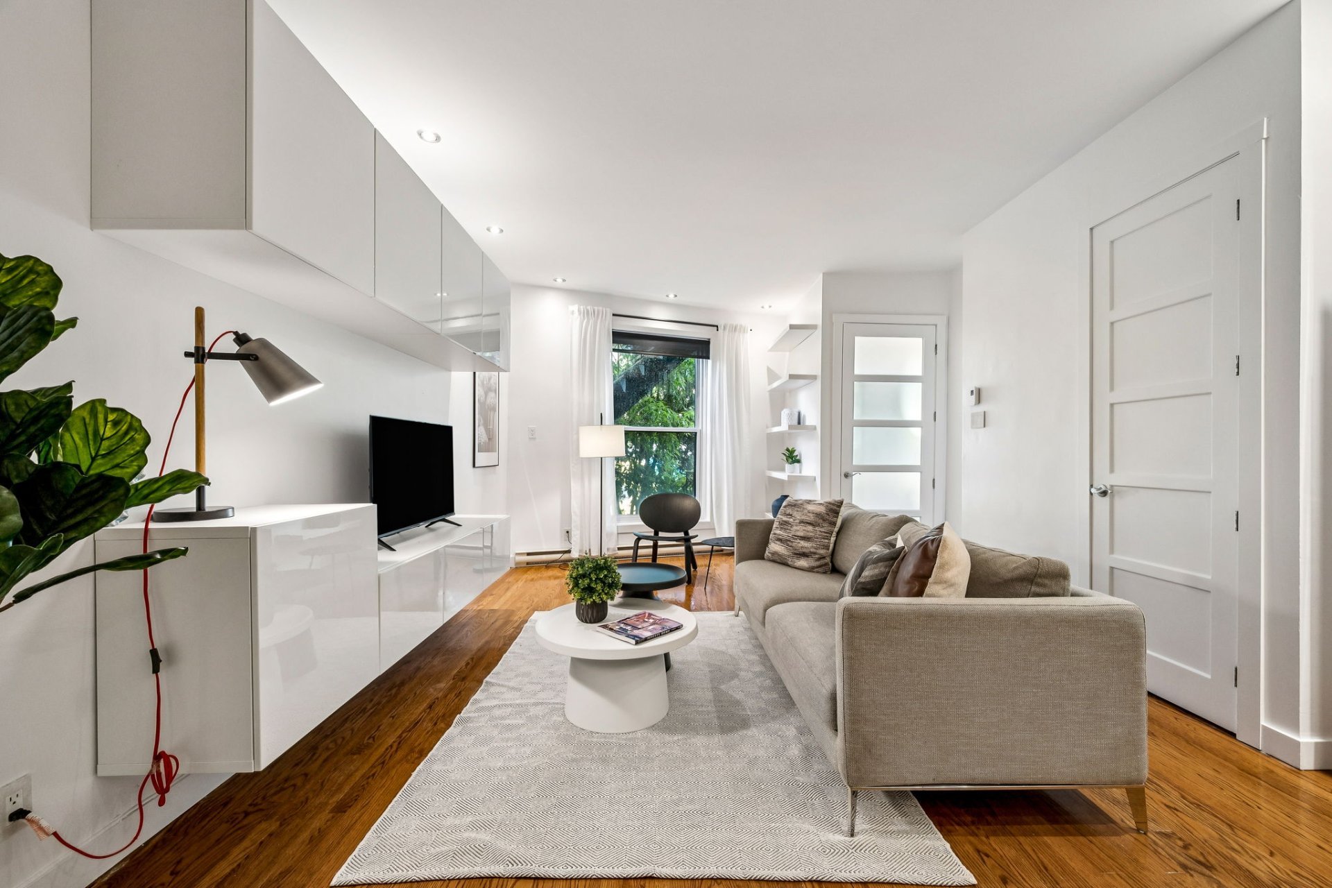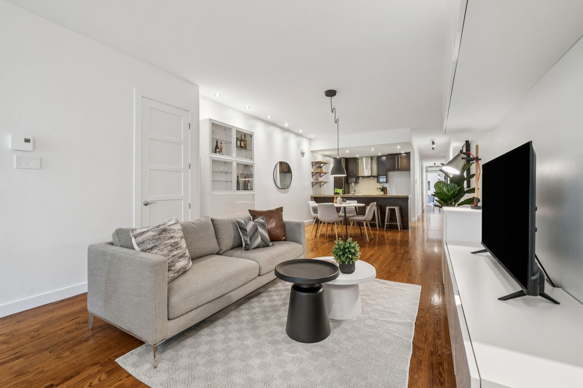 Stores au salon et chambre à coucher principale + pax . Thermostats intelligents Hilo avec possibilité d'être reliés au service d'Hydro Québec . Contrôleur de charge EV Duty et prise Nema , prêts à recevoir une bor...