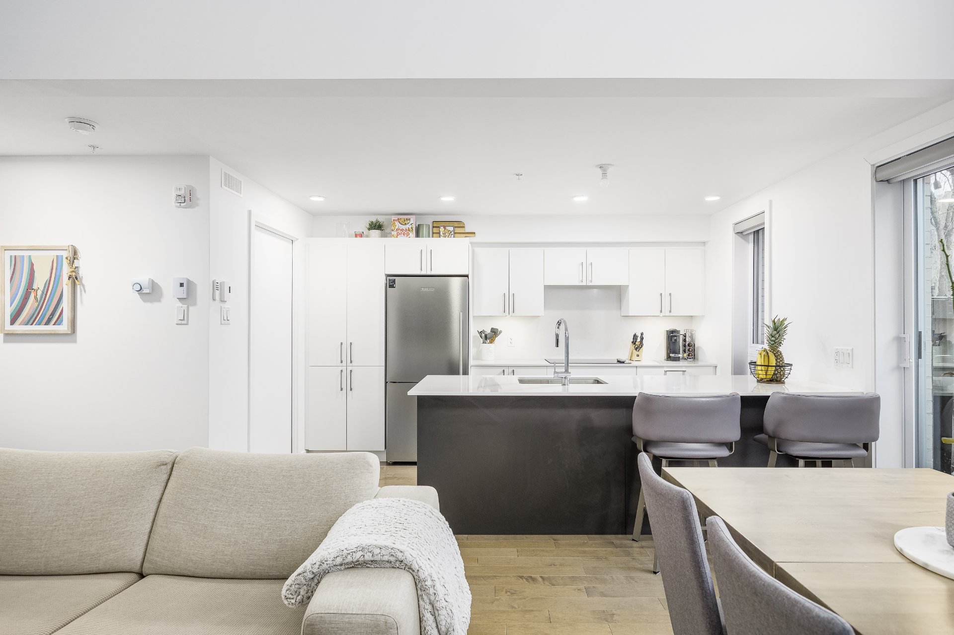 Spectaculaire copropriété de 3 étages à Pointe-St-Charles avec un beau jardin attenant du rez-de-chaussée. Dispose d'une suite parentale privée à l'étage supérieur, d'une salle d'eau pratique pour les clients au niveau principal et de 2 chambres privées avec baignoire au niveau inférieur. Un projet de condo nouvellement construit dans le quartier branché où vous êtes à quelques pas des restaurants, des services, des transports et des divertissements ! Une superbe propriété dans un quartier sûr, branché et désirable ! Garantie de construction de 5 ans en vigueur jusqu'en 2027.