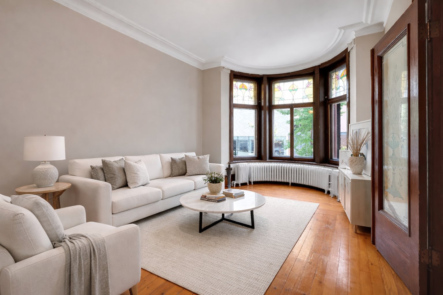 - Moulures, vitraux et détails d'origine
